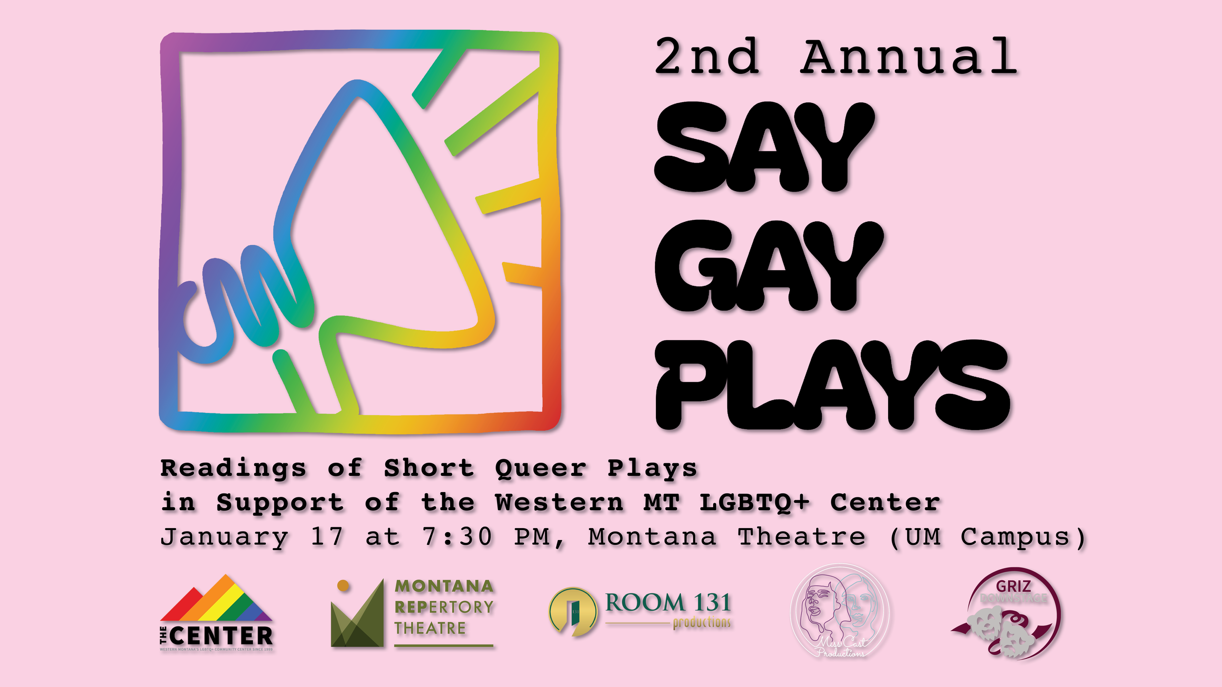 Montana Repertory Theatre and the Western Montana LGBTQ+ Center, in partnership with MissCast Productions, Room 131 Productions, and Griz Downstage, are excited to present the 2nd Annual SAY GAY PLAYS in Missoula, an evening of queer theatre to benefit the Center on Saturday, January 17, 2026 at 7:30 PM (doors at 7 PM) in the Montana Theatre on the University of Montana Campus (PARTV Building, 12 Campus Drive).